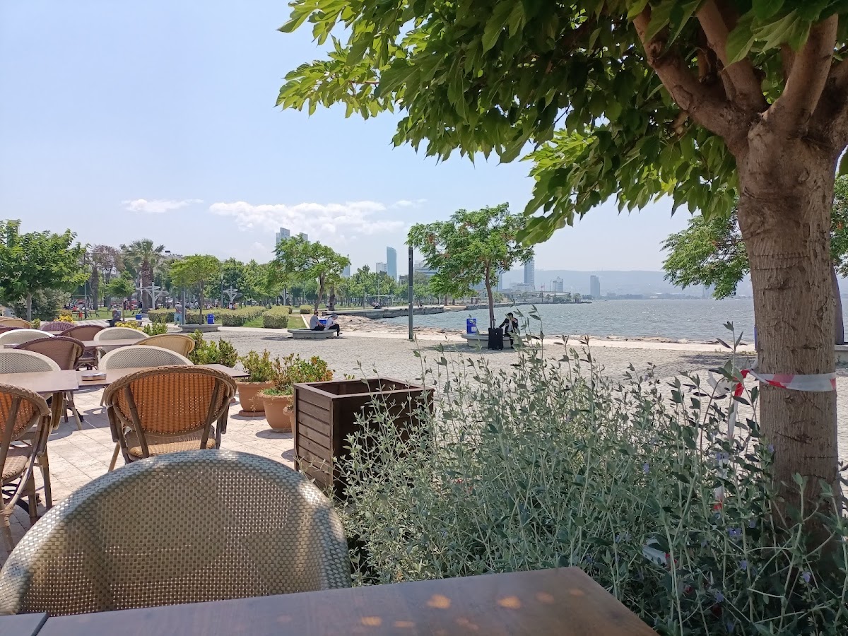 Families will find Bayraklı İskele Cafe especially appealing, situated amidst lush green spaces and children's playgrounds, making it an ideal stop for a lovely day out. The availability of free parking nearby adds to the convenience, allowing you to easily embrace the carefree seaside atmosphere.